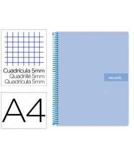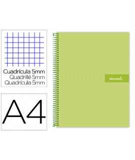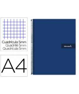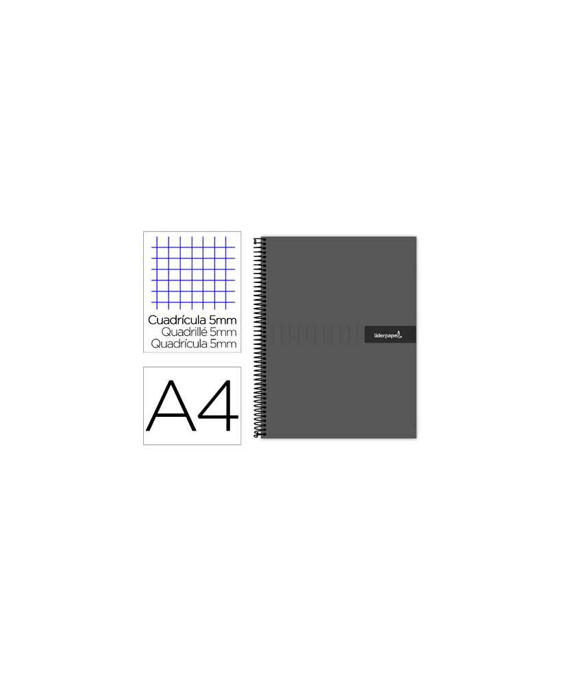 Cuaderno espiral liderpapel a4 micro crafty tapa forrada 120h 90gr cuadro 5mm 5 bandas 4 colores color negro . Tapa de cartón entrecolado de 1,5 mm de espesor, forrado con papel estucado mate de 1,35 g/m². Guarda interior impresa y plastificada. Papel de 90 g/m ². Espiral nylonizada. Coil-lock.