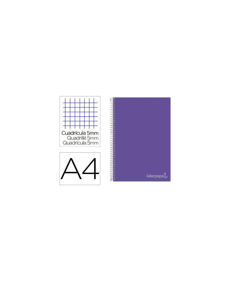 Cuaderno espiral liderpapel a4 micro jolly tapa forrada 140h 75gr cuadro 5mm 5 bandas 4 taladros color lila