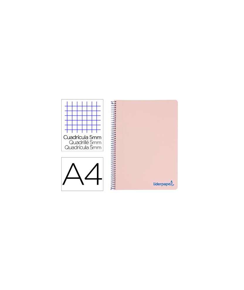 Cuaderno espiral liderpapel a4 micro wonder tapa plastico 120h 90gr cuadro 5mm 5 bandas 4 taladros color rosa . Tapa de polipropileno opaco de 600 micras impreso, que proporciona mayor duración y flexibilidad al cuaderno. Papel de 90 g/m².