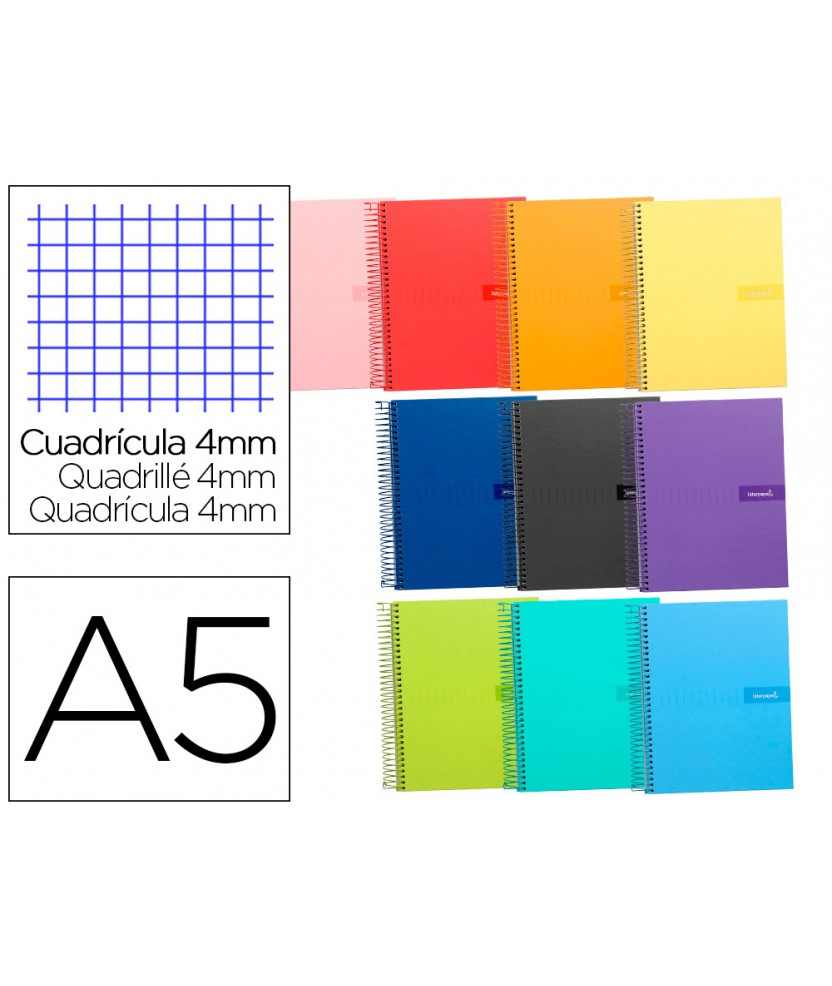 Cuaderno espiral liderpapel a5 crafty tapa forrada 80h 90gr cuadro 4mm con margen colores surtidos