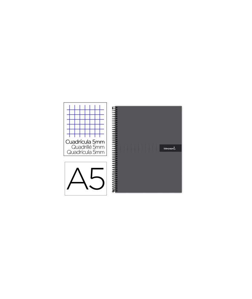 Cuaderno espiral liderpapel a5 micro crafty tapa forrada 120h 90gr cuadro 5mm 5 bandas 6 taladros color negro