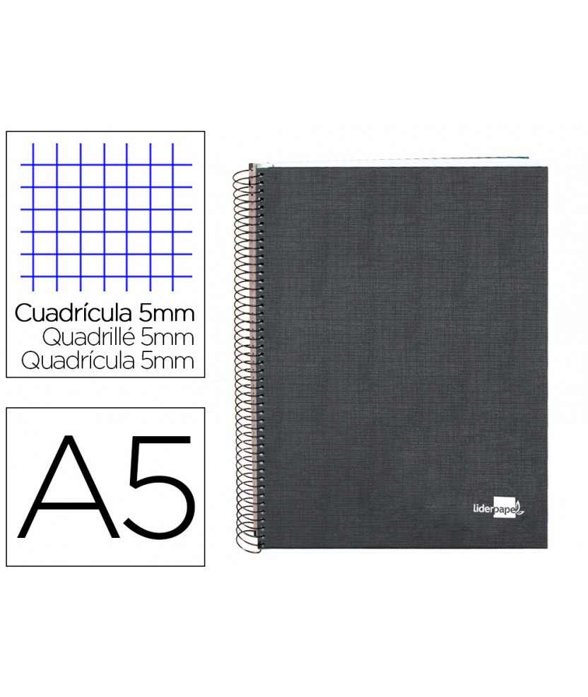 Cuaderno espiral liderpapel a5 micro papercoat tapa forrada 140h 75gr cuadro5mm 5 banda s 6 taladros negro