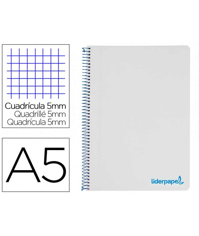 Cuaderno espiral liderpapel a5 micro wonder tapa plastico 120h 90gr cuadro 5mm 5 bandas 6 taladros color gris