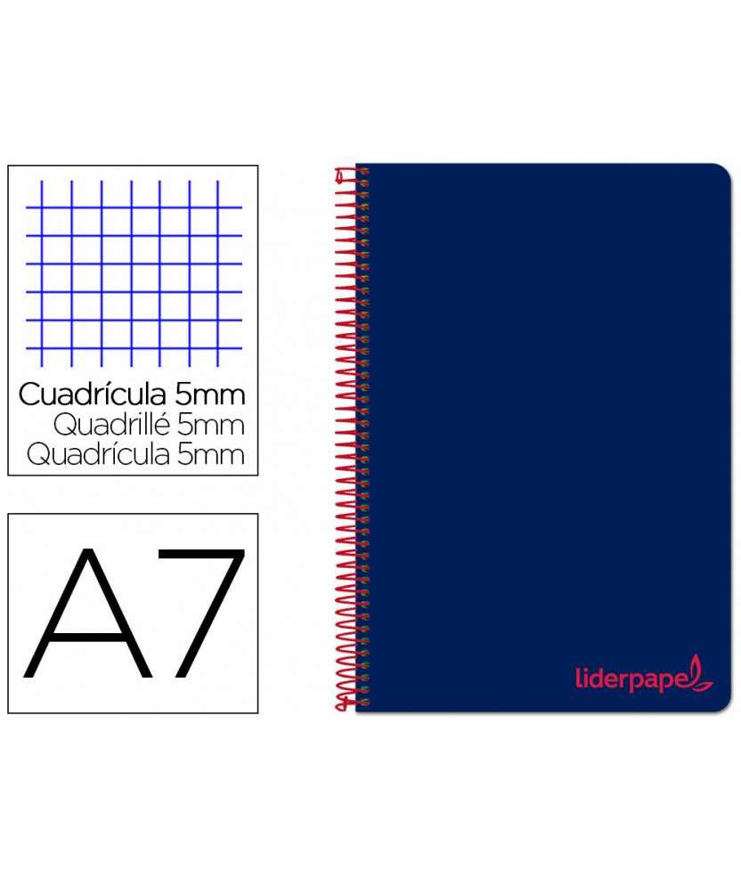 Cuaderno espiral liderpapel a7 micro wonder tapa plastico 100h 90gr cuadro 5mm 4 bandas color azul marino