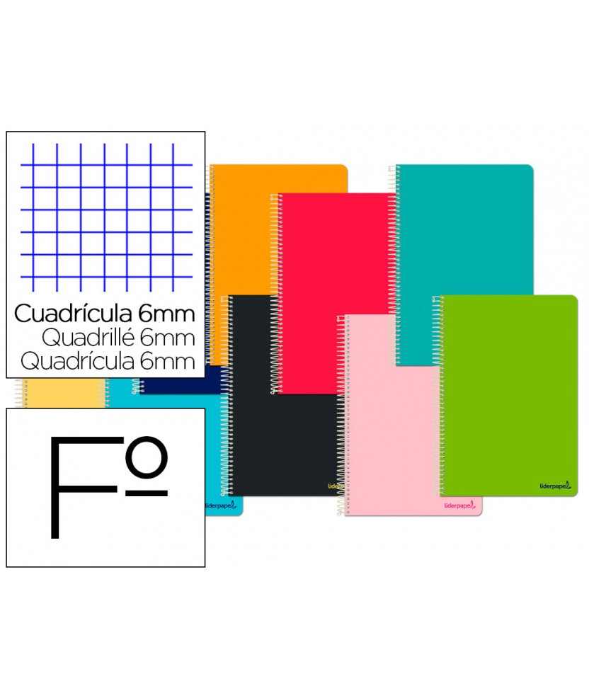 Cuaderno espiral liderpapel folio smart tapa blanda 80h 60gr cuadro 6mm con margen colores surtidos