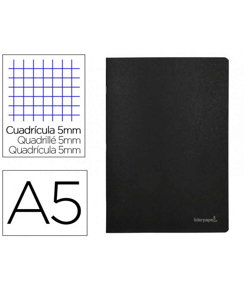 Libreta liderpapel tapa negra a5 80 hojas 60gr cuadro 5mm con doble margen
