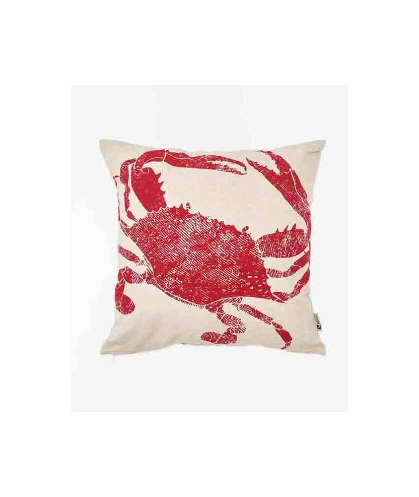 Cojín náutico con un cangrejo rojo serigrafiado sobre fondo blanco, aportando un detalle marino a cualquier salón o dormitorio. Su tamaño y suavidad lo hacen cómodo y decorativo a la vez, ideal para combinar con otros cojines de estilo costero. Incluye el relleno del cojín. Medidas: 45x45 cm.