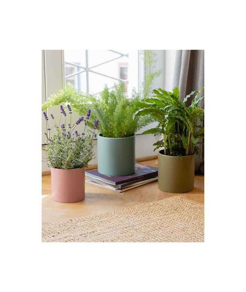 Conjunto de macetas multicolor de 3 tamaños diferentes, aptos para interior y exterior, resistente a las heladas y en invierno. El juego aporta una línea al diseño de plantas y al mismo tiempo proporciona una hermosa variedad en el alféizar de la ventana o el balcón. Medidas: P: 13x13 cm., M: 15x15 cm., L: 17x17 cm.