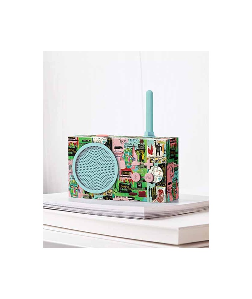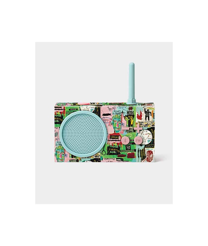 La radio Tykho 3 de Lexon destaca por su diseño icónico y forma retro. Creada hace más de 20 años, Tykho es el primer objeto de diseño que aparece en la portada de la revista Time. Resistente al agua. Incluye un cable Micro-USB para cargarlo. En esta ocasión, Lexon ha reinventado sus artículos más icónicos para presentar algunas de las principales obras de Jean-Michel Basquiat. Con varios diseños disponibles, éste se inspira en In Italian. Medidas: 14x4x8 cm.