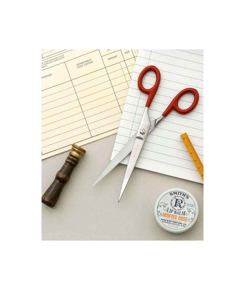 Tijera clásica de acero Inoxidable, ligera y pequeña. Los mangos están recubiertos de PVC y proporcionan un agarre excelente. Incluye un estuche de PVC especial para proteger el filo y proporcionar un almacenamiento cómodo. Se cierra de forma segura con un botón. Medidas: 5,4x17x0,9 cm.