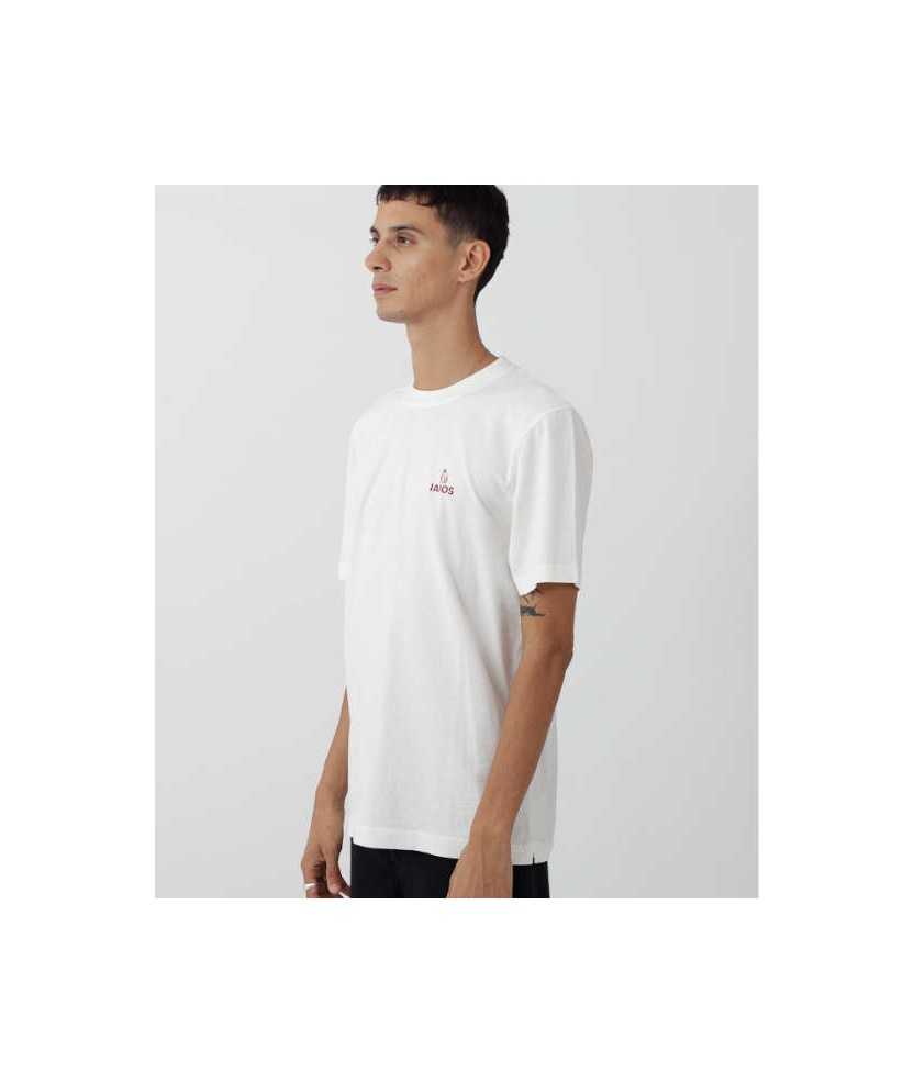 Esta camiseta color blanco roto de IAIOS presenta una pequeña ilustración en rojo de un señor mayor con las manos detrás, rindiendo homenaje a la gente mayor y evocando sabiduría y serenidad. Fabricada en Portugal con algodón orgánico certificado GOTS, combina calidad, sostenibilidad y comodidad. Ideal para quienes valoran autenticidad y respeto por el medio ambiente en el vestuario. 100% algodón orgánico.