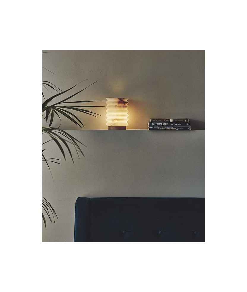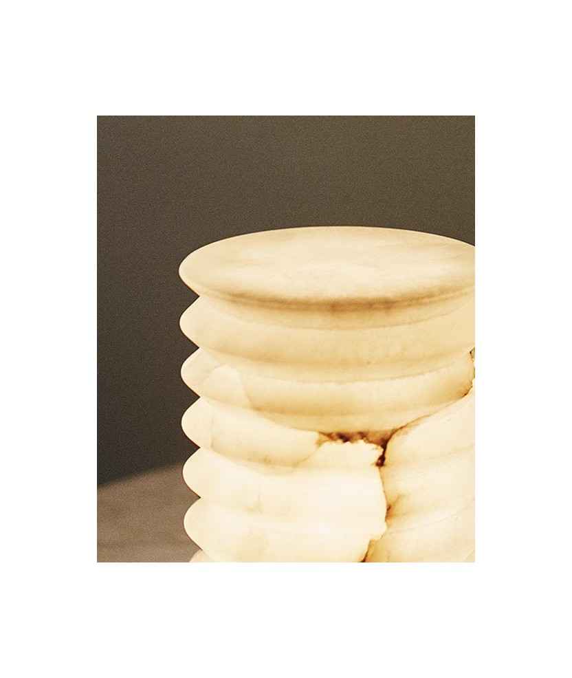 Lámpara decorativa de sobremesa de alabastro que pertenece a la familia TORNO. TORNO es un proyecto de luces atemporales y de proximidad, producidas artesanalmente, que reivindican el oficio de tornero y los materiales naturales nobles como el alabastro y la madera de castaño. El producto resultante es una serie de esculturas de luz que generan un ambiente cálido y acogedor. La familia está formada por luces colgantes, apliques de pared y luces de sobremesa. Apto para interiores. Medidas: 16,2x21,7 cm.