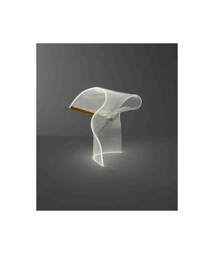 La lámpara de mesa Gweilo Song está compuesta por acrílico termoformado y un perfil de aluminio extruido que aloja una tira LED. Se esculpen cuidadosamente a mano, una por una, en Barcelona. Gracias a su proceso artesanal, cada pieza es única. Medidas: 35x40cm.