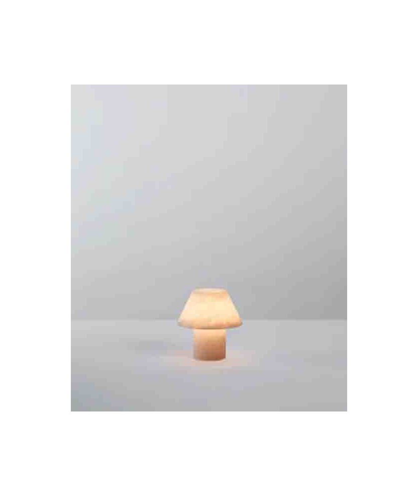La luz Petra M PE está compuesta por una base cilíndrica y una pantalla cónica, ambos hechos de un único bloque de alabastro. Este trabajo artesanal resalta la pureza de las formas y la belleza orgánica del material. Pura utilidad, puro material. Medidas: 16x16x8cm