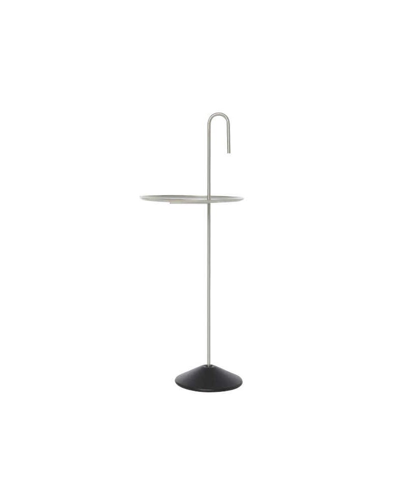 La colección Baton de Ronan Bouroullec, producida por BD, destaca por su simplicidad y versatilidad. Funciona como separador de ambientes, candelabro, jarrón o mesa auxiliar, con una estructura de acero y tubo curvado de acero inoxidable. Medidas: 35 x 35 x h.90 cm.