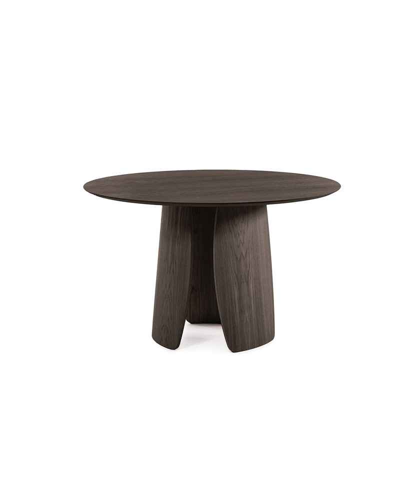 Mesa de madera diseñada por Jesús y Jon Gasca, que evoca la forma de los pétalos de una flor. Presenta patas curvadas de madera contrachapada procedente de bosques franceses sostenibles y un sobre orgánico en MDF chapado en gris cálido. Su diseño combina ligereza, sensualidad y presencia, aportando calidez y equilibrio a cualquier espacio.