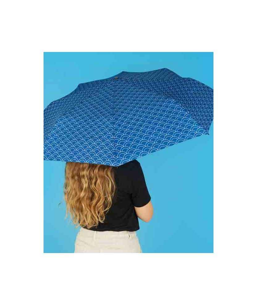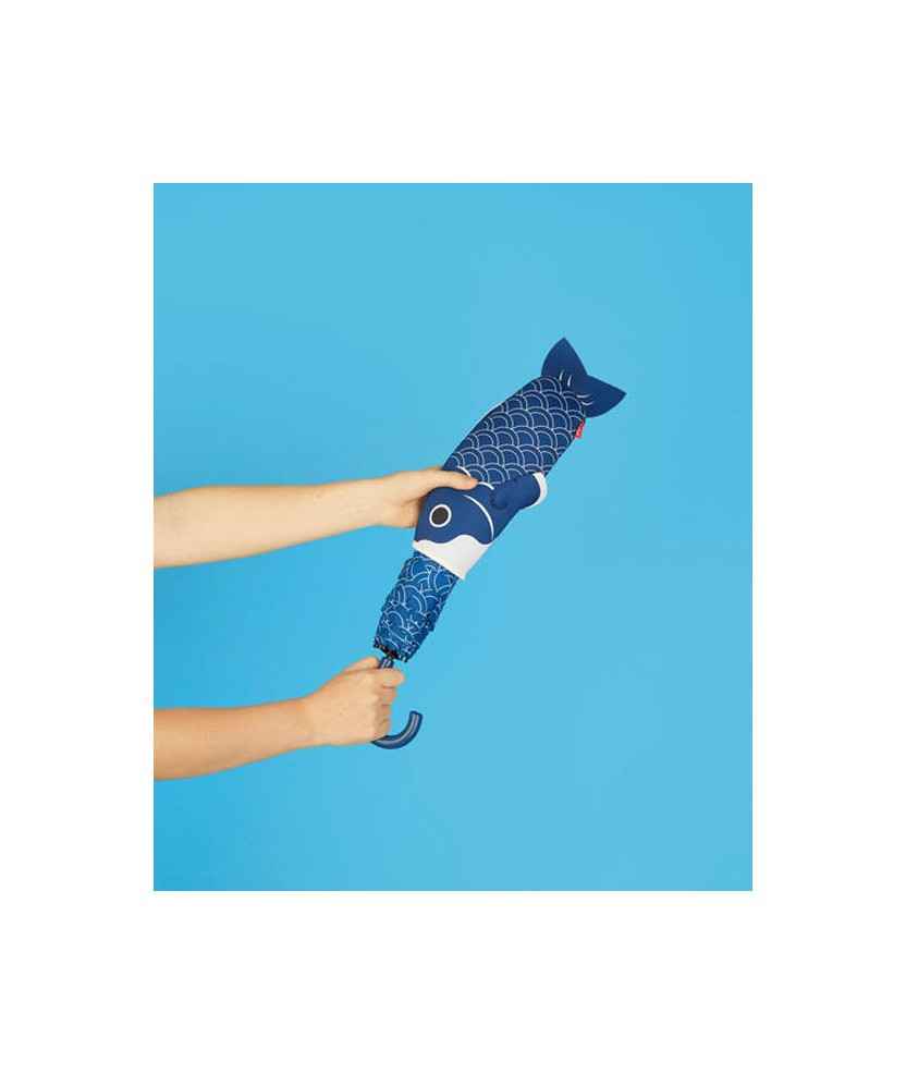 Paraguas con patrón gráfico que simula escamas de pez y funda de neopreno en forma de carpa koi. Fabricado en nylon, compacto y plegable, permite llevarlo cómodamente sin mojar el bolso o la mochila. Diseño original y práctico, ideal para amantes de Japón y del mar. Perfecto como regalo o para dar un toque divertido y funcional a cualquier día de lluvia. Medidas: 31x11,5x6 cm.