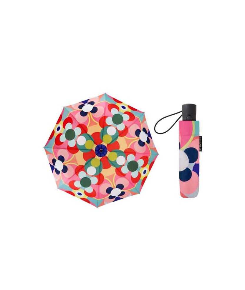 Paraguas de bolsillo Sushi con apertura automática y correa de goma. Compacto y ligero, ideal para llevar en el bolso. Abierto, cubre 100 cm y aporta un toque de color en los días lluviosos. Material de plástico y tela con separadores metálicos. Medidas: cerrado 29 x 5,5 cm, abierto 58 x 100 cm.
