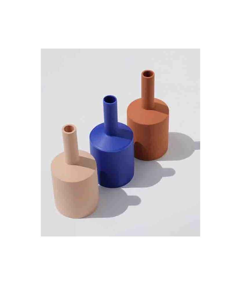 Las botellas Giorgio tienen como fuente de inspiración directa los bodegones del famoso pintor metafísico italiano Giorgio Morandi. Sus objetos cotidianos, aislados, bajo una luz onírica, se convertían en los protagonistas de sus obras. La geometría coge bastante para unir artesanía y diseño. En 2 formatos diferentes, y una gama cromática especialmente seleccionada, son fácilmente combinables entre ellas. Diseñado por Surostudio, un taller de cerámica integrado por Angelo Cabreos y Pol Valls. Medidas: 27 x 11,5 cm
