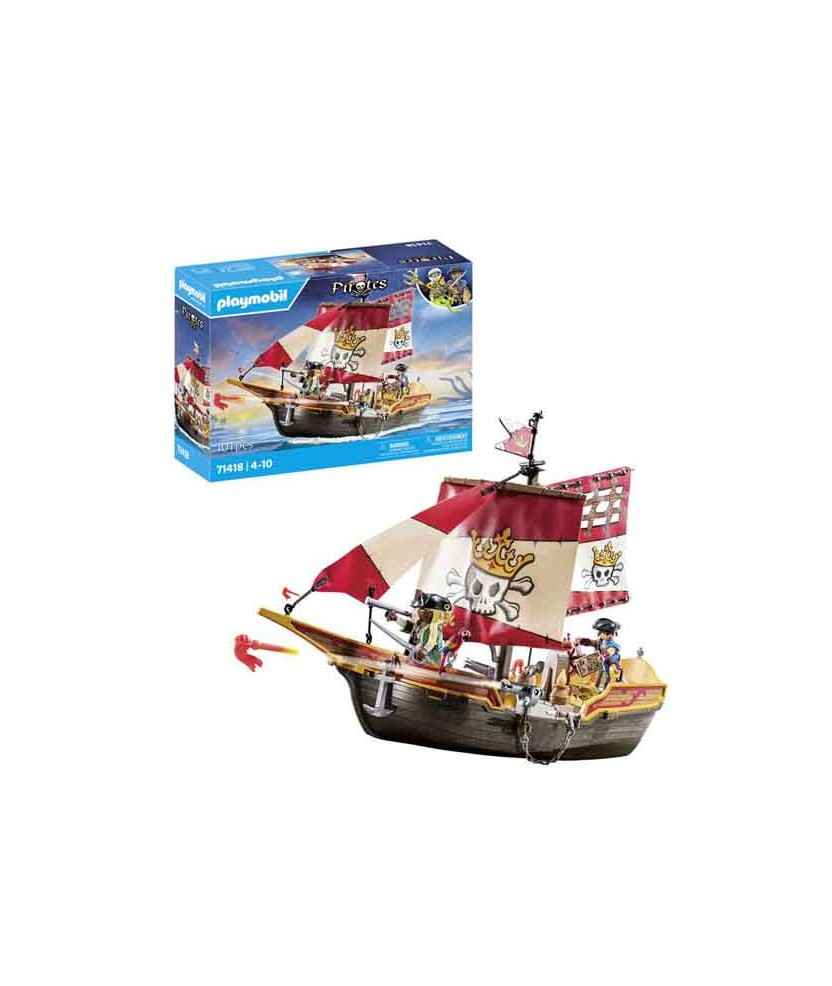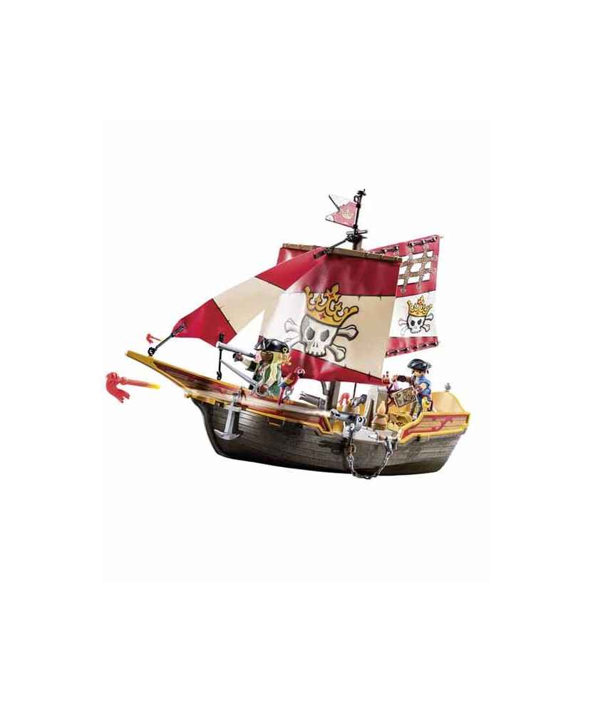 Barco pirata con velas moviles y canones giratorios, incluye dos figuras, un loro, ancla y varios accesorios. La cubierta cuenta con cinco fijaciones para asegurar las figuras mientras los piratas se lanzan a la aventura. Con mapa y brujula, los juegos permiten imaginar emocionantes aventuras en alta mar buscando tesoros perdidos. Ideal para ninos y ninas a partir de cuatro anos, combina diversion y creatividad con detalles realistas.