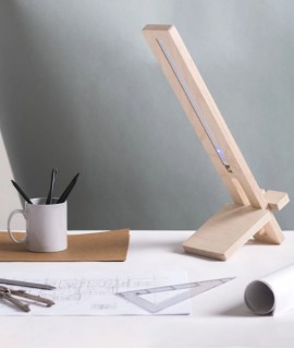 Soporte para tabletas, e-books o libros, de diseño minimalista hecho con madera de abedul. Permite colocarlos en vertical u horizontal, cargar la batería mientras los utilice y ajustar la inclinación, ya que está formado por dos piezas desmontables: el soporte central y una base que se encaja y que deslizando permite establecer la inclinación adecuada. El soporte es estable en cualquier superficie, tanto en el escritorio, como en la falda sentados en el sofá o tumbados en la cama. Medidas: 21x37x12 cm. Peso: 750 g.