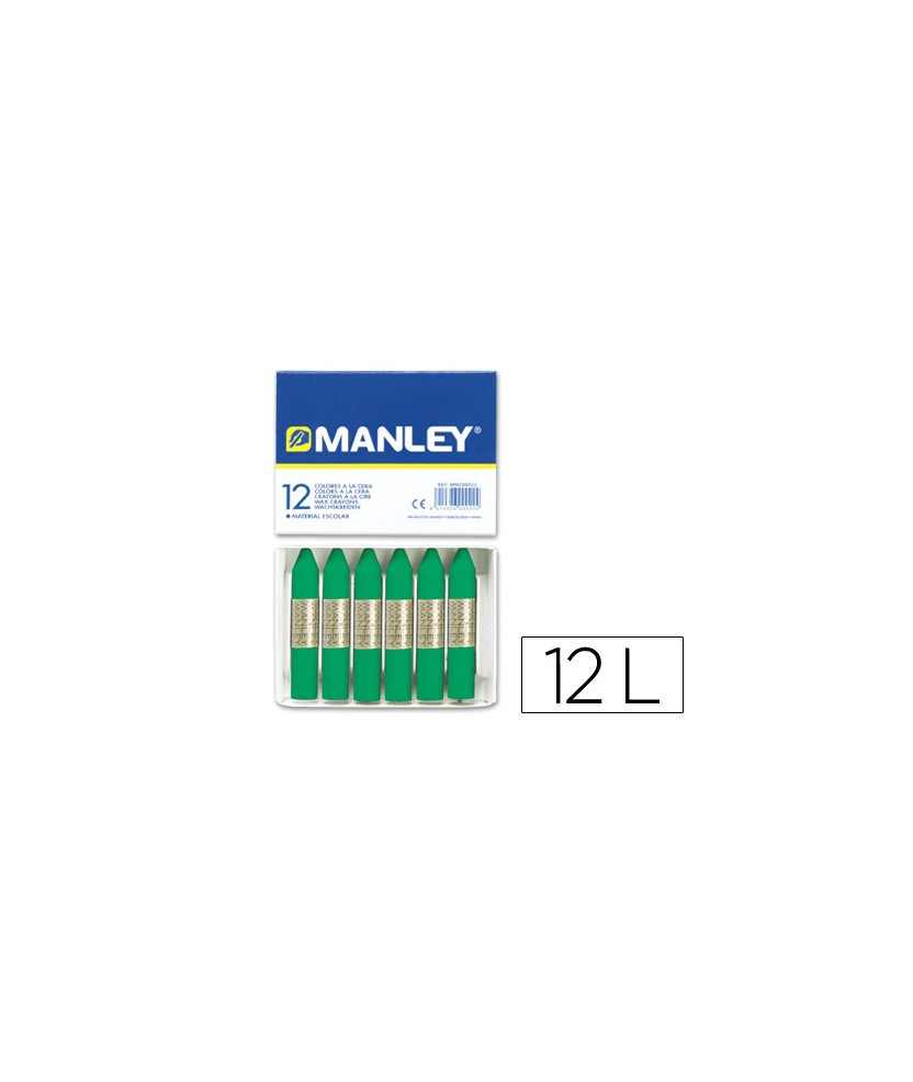 Lapices cera manley unicolor verde natural n.21 caja de 12 unidades . Se distinguen por su suavidad y resistencia a la luz. Los colores se mezclan con facilidad permitiendo su utilización sobre todo tipo de superficies porosas. Altura de la cera: 60 mm. Diámetro de la cera: 10 mm.