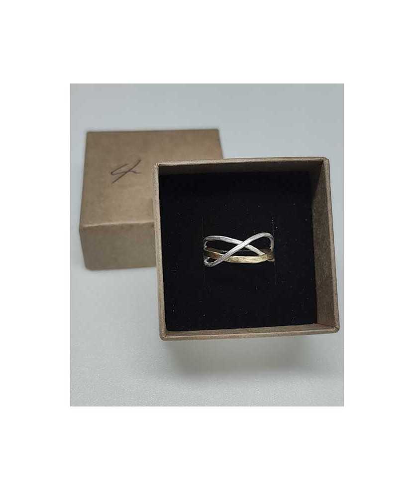 Anillo PossiDona de plata de ley hechos a mano con tres posidonias y dos acabados combinados: plata y baño de oro de 3 µ. El diseño permite un ajuste cómodo y resalta la combinación de colores de los metales. Líneas limpias y trabajo artesanal en cada detalle.