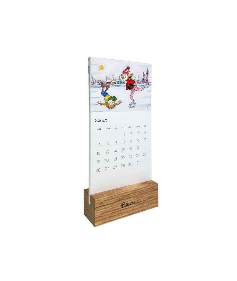 Llena tu espacio de trabajo de color con este calendario de sobremesa 2026 de Pilarín, ilustrado con escenas cotidianas llenas de vida, cada mes incluye una lámina inédita con el trazo tan reconocible de la autora. Incluye una sólida base de madera de haya que aporta estabilidad y un toque decorativo, ideal para organizarte y decorar el escritorio o cualquier rincón. Medidas: 10,5 cm x 20,5 cm · Materiales: Papel blanco natural 300 g y base de madera de haya.