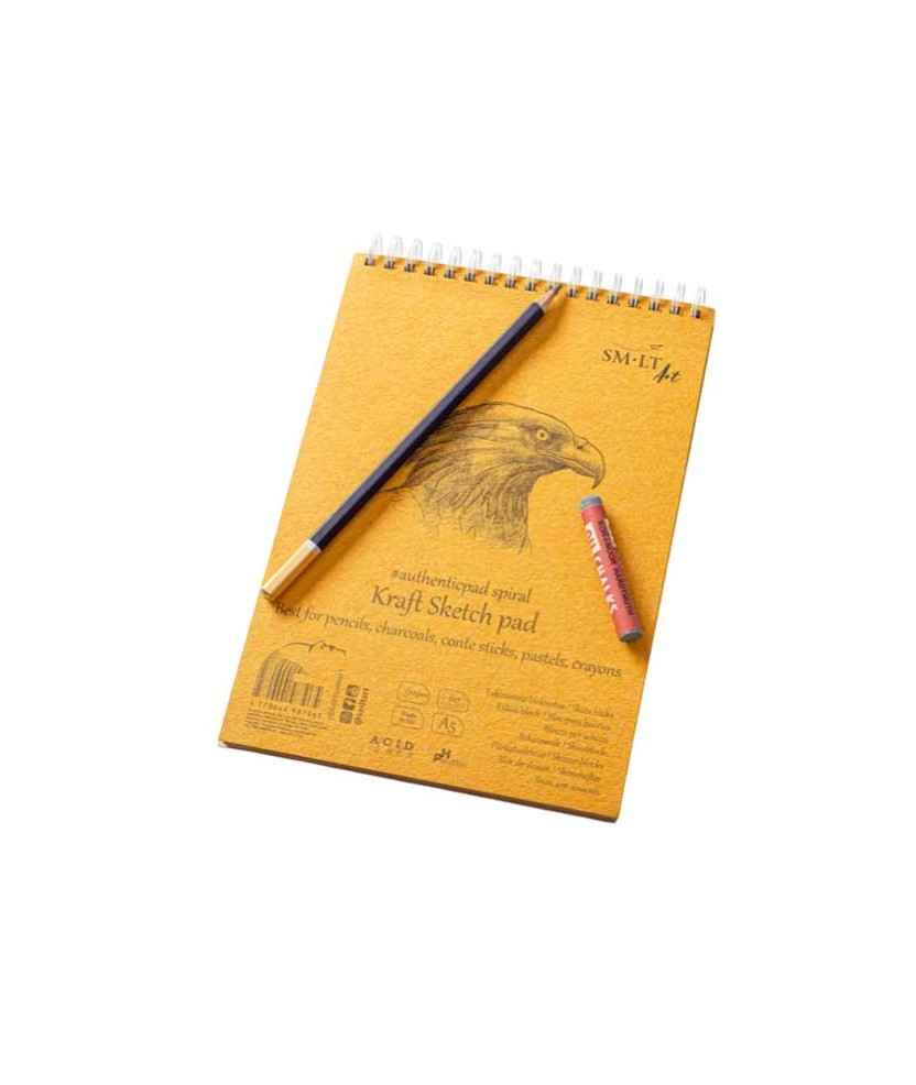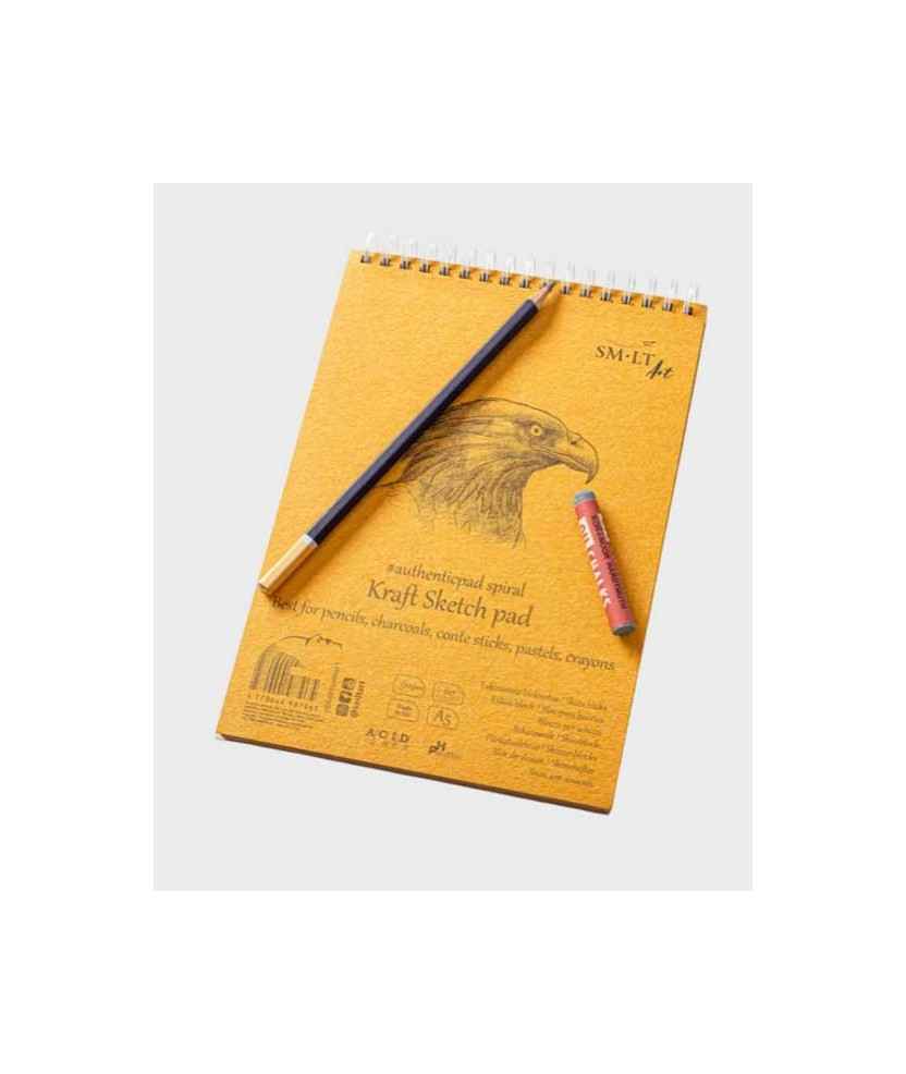 Bloc de bocetos con papel kraft marrón, ideal para técnicas secas como lápiz, carboncillo, tinta o bolígrafo. Papel de 90 g/m² con una textura ligera que aporta calidez a los dibujos. Cuenta con 60 hojas y encuadernación con espiral superior para un uso cómodo. Apto para bocetos rápidos o trabajos con contraste de luces. Medidas: A5.