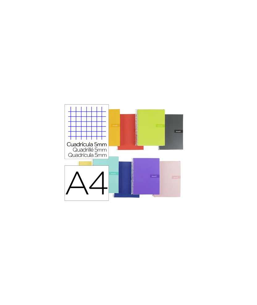 Cuaderno espiral liderpapel a4 crafty tapa forrada 80h 90gr cuadro 5mm con margen colores surtidos
