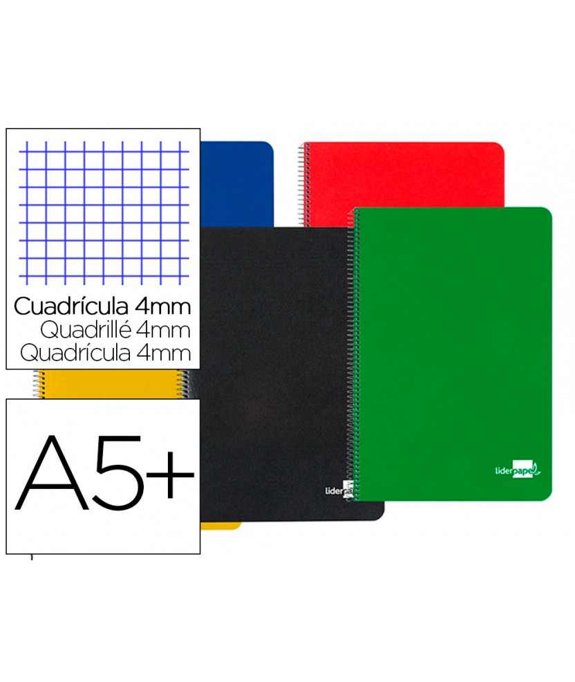 Cuaderno espiral liderpapel cuarto tapa dura 80h 75gr cuadro 4mm con margen colores surtidos