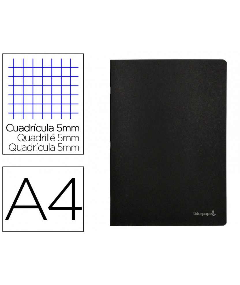 Libreta liderpapel tapa negra a4 80 hojas 60gr cuadro 5mm con doble margen . Fabricada en cartoncillo impreso y plastificado en polietileno. 80 hojas. Papel de 60 g/m². Color negro.