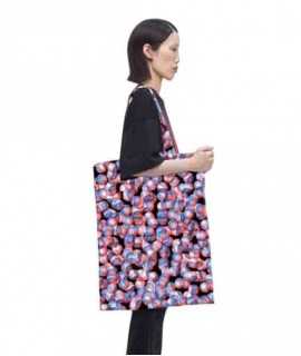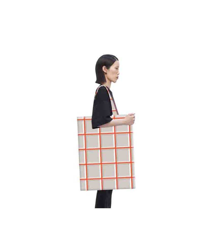 Bolsa de algodón sarga de 260 g/m² diseñada por Dunja Jankovic dentro de The Bag Project. Estampada con tintas de base de agua mediante serigrafía, presenta un patrón de líneas propio de su obra visual. Adecuada para el uso diario por su capacidad y resistencia. Se puede lavar hasta 30 °C. Medidas: cuerpo 55x45 cm, bolsillo interior 29x23 cm, asas 60x3 cm.