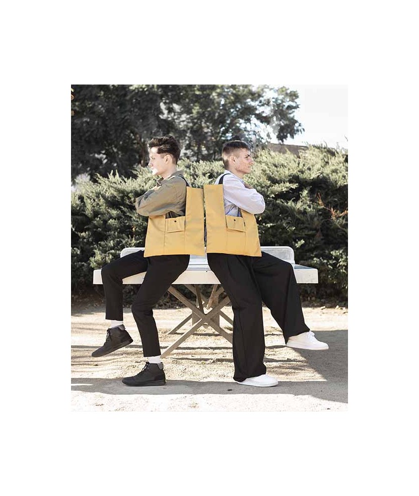La tote bag UR3 es una bolsa de forma rectangular, adaptable para llevar en cualquier ocasión. Tiene dos bolsillos escondidos, dos pequeños con cierre de botón y el espacio principal donde podás llevar lo esencial. Su tejido es repelente al agua. Disponible en varios colores. Medidas: 45x40 cm.