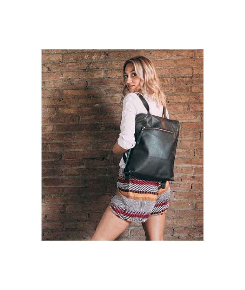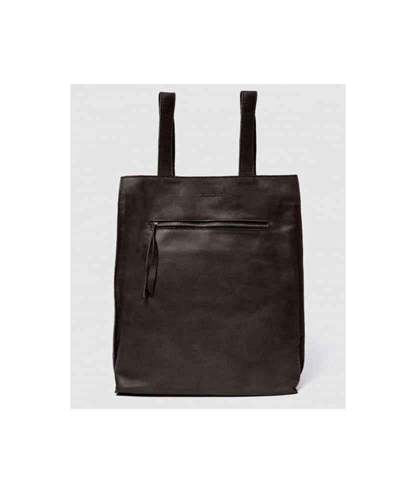 Mochila de formas minimalistas confeccionada en cuero flor de vacuno. El interior cuenta con un forro textil que protege la piel y aporta mayor comodidad. Dispone de dos compartimentos exteriores con cremallera y un bolsillo interior también con cremallera. Diseñada por el equipo de Nadal & Co y elaborada a mano de forma completamente artesanal con gran atención al detalle. Medidas: 30x37x8 cm.