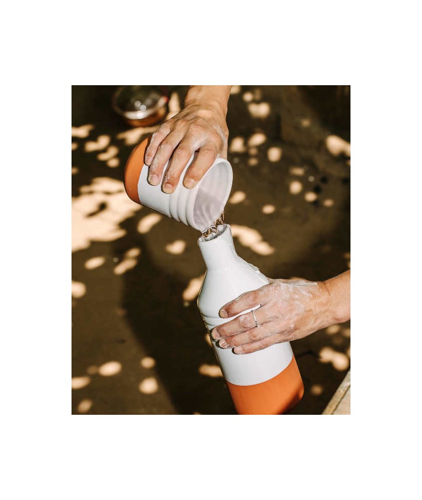 Vasos de barro esmaltado hechos a mano, ideales para bebidas frías o calientes y disponibles en varios colores. Fabricados en talleres locales, están moldeados a mano y esmaltados con un acabado brillante en su interior que garantiza resistencia y durabilidad, perfectos para el uso diario. Material: barro esmaltado. Medidas: 8,5 x 8,5 x 10 cm.
