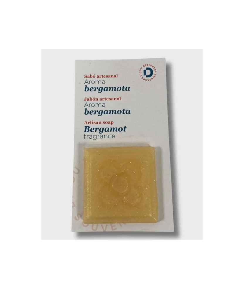 Jabón artesanal de glicerina natural, sin sulfatos ni parabenos, elaborado a mano con micas y fragancia de bergamota de color amarillo. Se vende de forma unitaria e incluye presentación con packaging y bolsa. Diseño inspirado en el Panot de Barcelona. Tamaño: 3.5 cm x 3.5 cm