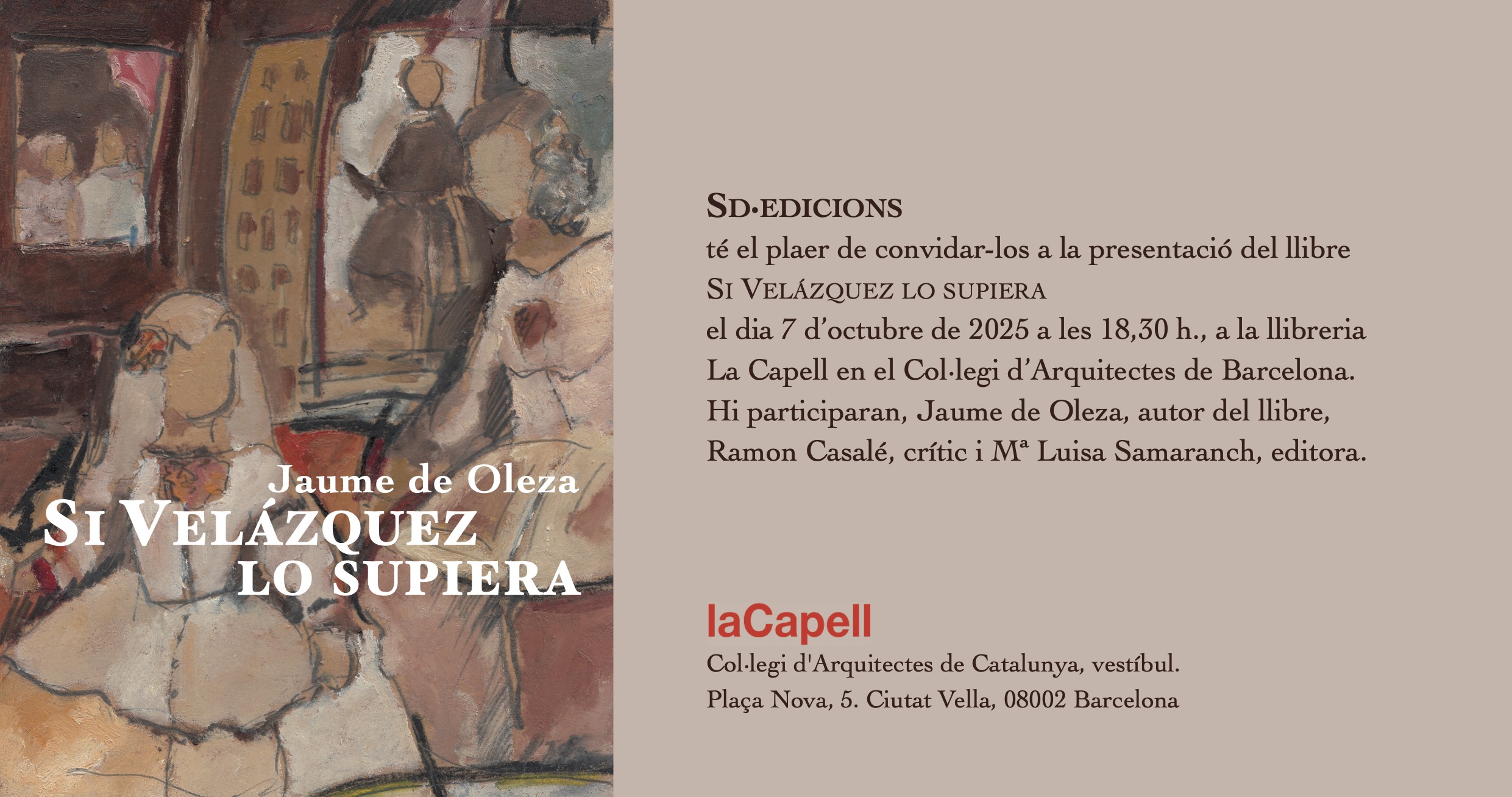 De : dimarts, octubre 7, 2025 A : dimarts, octubre 7, 2025 Lugar : laCapell (Plaça Nova, 5)