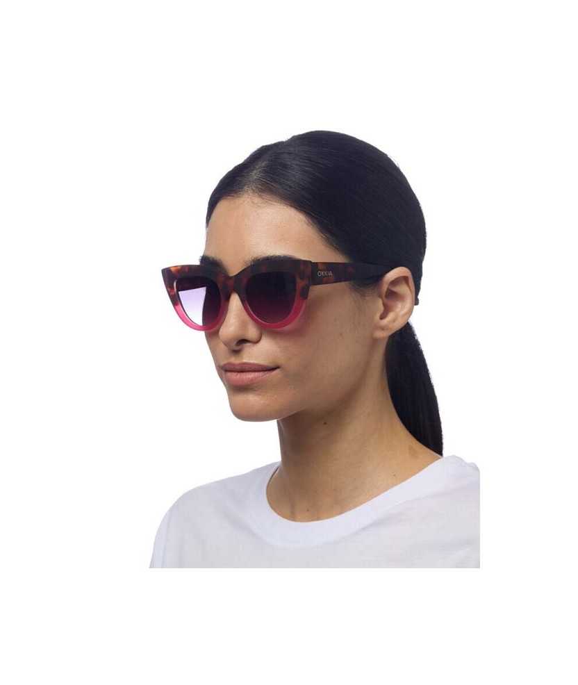 Gafas de sol modelo Claudia Big Cat Eye con montura soft-touch y lentes grandes con ángulos elevados que aumentan estilo y misterio. Color de montura havana pink y lentes negras, filtro de categoría 3 (transmisión 8 %-18 %) con protección UV 400. Diseño cómodo y elegante, perfecto para destacar. Limpieza con paño húmedo y detergente neutro, secar con paño suave. Evitar disolventes.