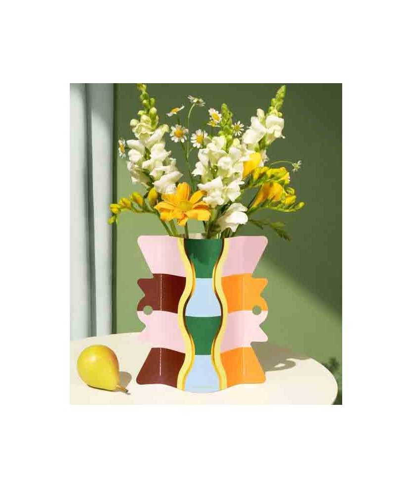 Mini jarrón Giza hecho en papel especial resistente al agua de 180 gr. Impresión offset con detalles metálicos, laminado y cosido a mano. Pieza decorativa ligera y elegante, ideal para mesa, escritorio o aparador. Inspirado en motivos gráficos de Egipto, aporta originalidad y estilo en un diseño exclusivo. Medidas: 16,8 x 16,8 cm.