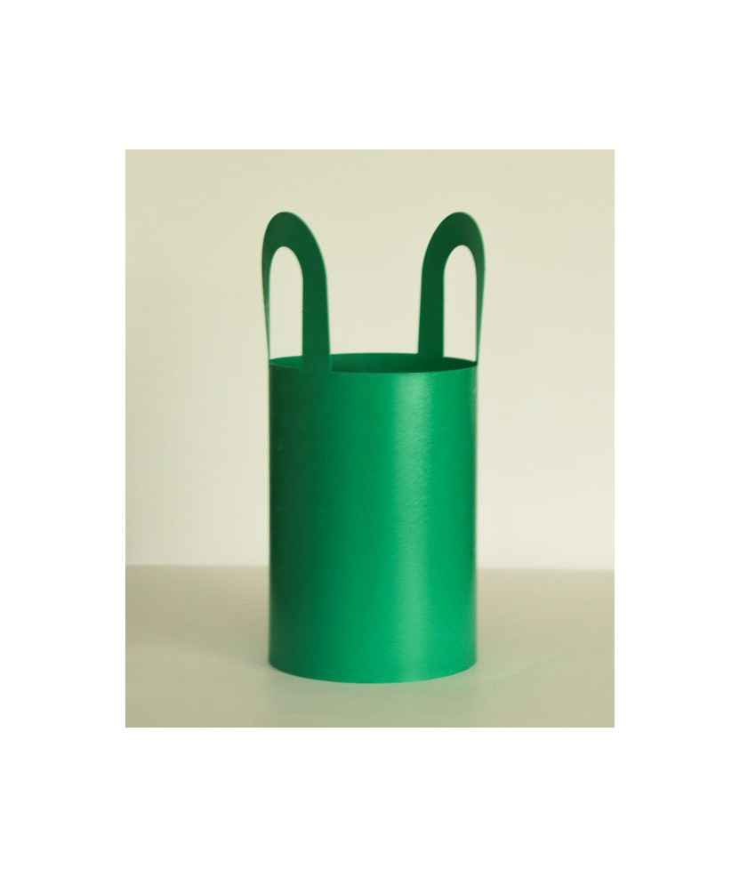 Lámpara en formato cesta para exterior, fabricada con láminas enrollables de plakene que ofrecen una configuración adaptable y resistente. Incluye dispositivo LED recargable que asegura una iluminación eficiente y práctica en actividades al aire libre. El diseño forma parte de la selección Elisava x La Capell 2025 y destaca por su estética minimalista en color verde. Medidas: 8,5x19,5 cm.