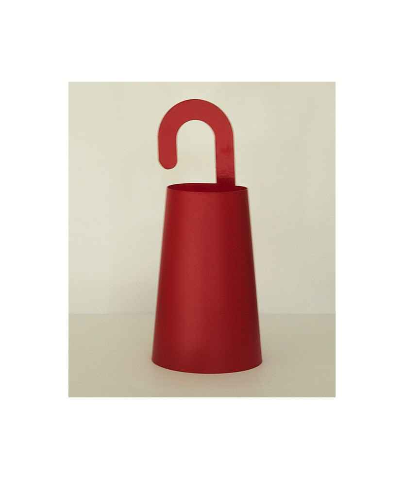 Lámpara de colgar para exterior fabricada con láminas enrollables de plakene que ofrecen una configuración adaptable y resistente. Incluye dispositivo LED recargable que asegura una iluminación eficiente y práctica en espacios abiertos. El diseño forma parte de la selección Elisava x La Capell 2025 y combina funcionalidad con una estética minimalista en color rojo. Medidas: 8x19,5 cm.