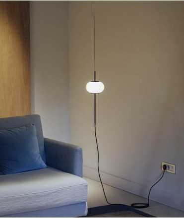 Luz tranquila y envolvente. La lámpara de techo Astros 6935 con sistema de regulación en altura, es ideal para proyectos de iluminación gracias a su sistema que aporta armonía en los ambientes y permite crear diferentes configuraciones. Pantalla difusora en vidrio opal triplex satinado al ácido. Soportes superior e inferior de la pantalla y portalámparas G9 en zamak inyectado. Acabado en lacado negro mate. Tubo y base en acero. Interruptor aéreo incluido en el cable de 2 m. Medidas: 160x46x9,8cm. Incluye 2 bombillas.