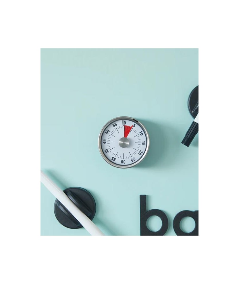 Temporizador mecánico compacto de dos tonos con parte posterior magnética para adherirlo a superficies metálicas. Cuenta regresiva de hasta 1 hora. No requiere pilas. Ideal para cocinar, entrenar o estudiar. Pantalla de cuenta regresiva clara y diseño elegante y funcional que combina con cualquier espacio. Material: acero inoxidable. Medidas: 6x6x3,5 cm.