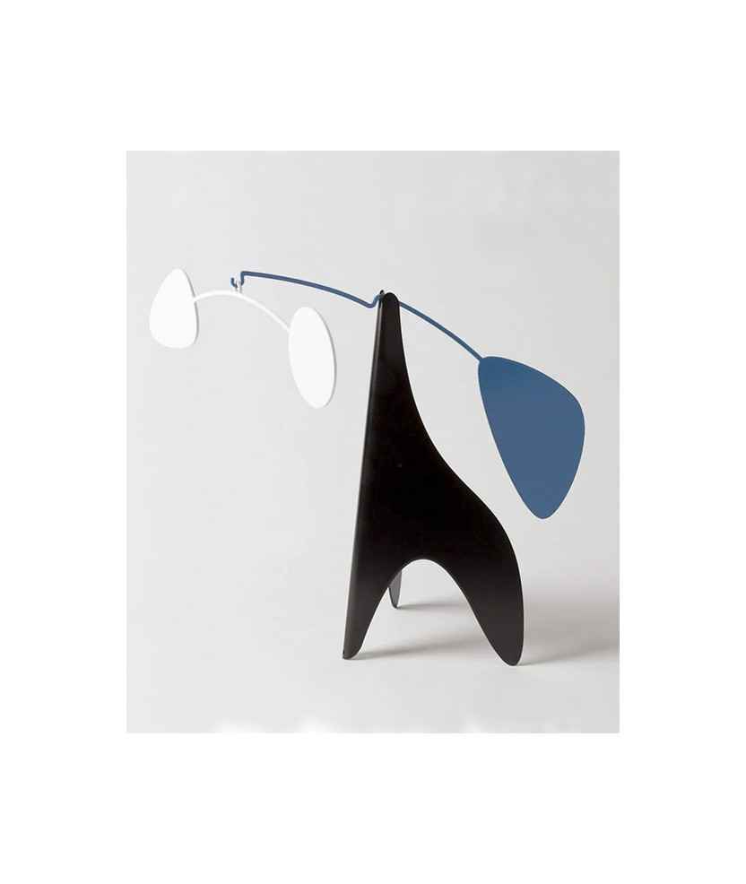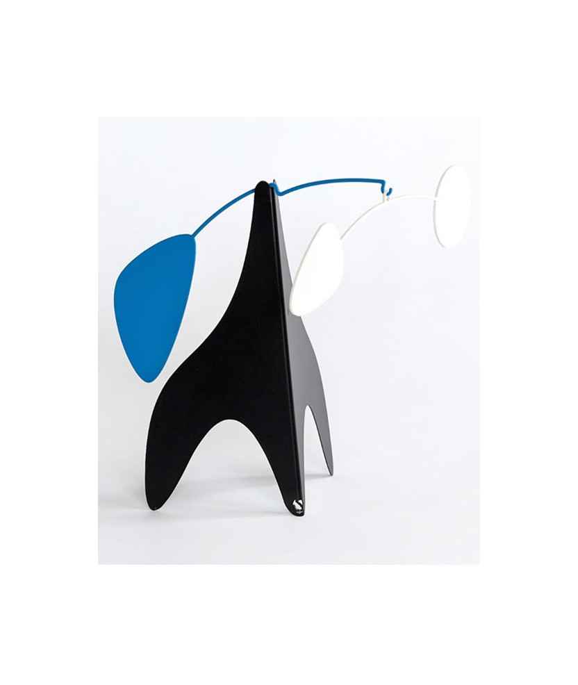 Basado en uno de los primeros diseños de Ekko, este móvil ede formas geométricas y minimalístas está hecho de aluminio cortado con láser de precisión y una base de acero con recubrimiento en polvo. Disponible en blanco y azul o rojo y amarillo. Medidas: 23x20x23 cm.
