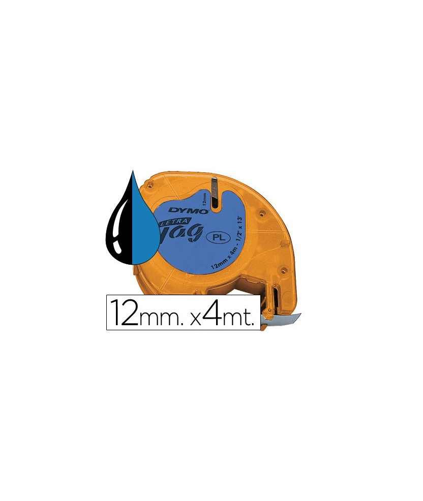 Cinta dymo 12mmx4mt -negro/azul para maquina letratag . Creadas expresamente para su rotuladora DYMO LetraTag, las etiquetas DYMO LetraTag se envasan en cartuchos fáciles de cargar y su reverso se retira con facilidad para una utilización sin problemas. Hay 3 materiales disponibles: papel, plástico y de adhesión textil.
