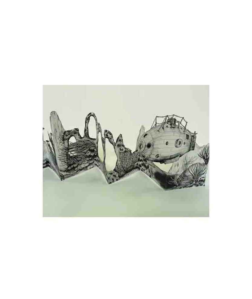 Libro de artista en acordeón que muestra el Ictineo I, el primer submarino creado en el siglo XIX con fines recreativos y comerciales. El artículo es una impresión digital de alta calidad a partir de un dibujo original en tinta, cortado y doblado a mano. Producto hecho a mano en Barcelona La Frivé es un estudio y tienda creativa en Barcelona, fundado en noviembre de 2017, donde se combinan el arte y la encuadernación. Las medidas son aproximadamente 14 cm x 50 cm desplegado.