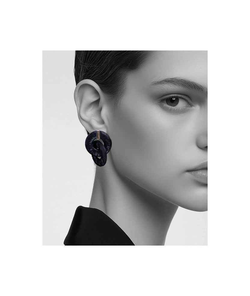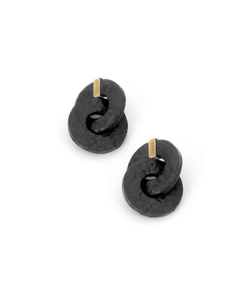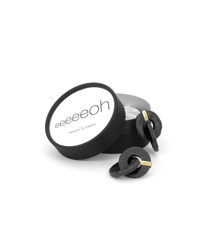 Modelo 11, pendiente de forma circular, tamaño pequeño y color negro. Eeeeeoh es más que un pendiente: es un código de inclusión elaborado con material reciclado y ecológico, creado por personas con diversidad funcional en LaFact. Inspirado en la geometría de la Bauhaus y la filosofía Gestalt, esta pieza ligera de menos de 3 g conecta con la belleza interior y el equilibrio personal. Incorpora cierre hipoalergénico para garantizar comodidad y seguridad.