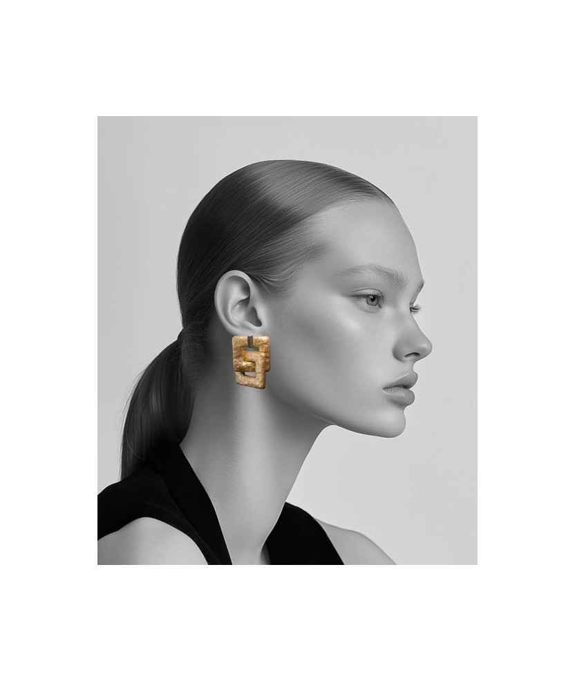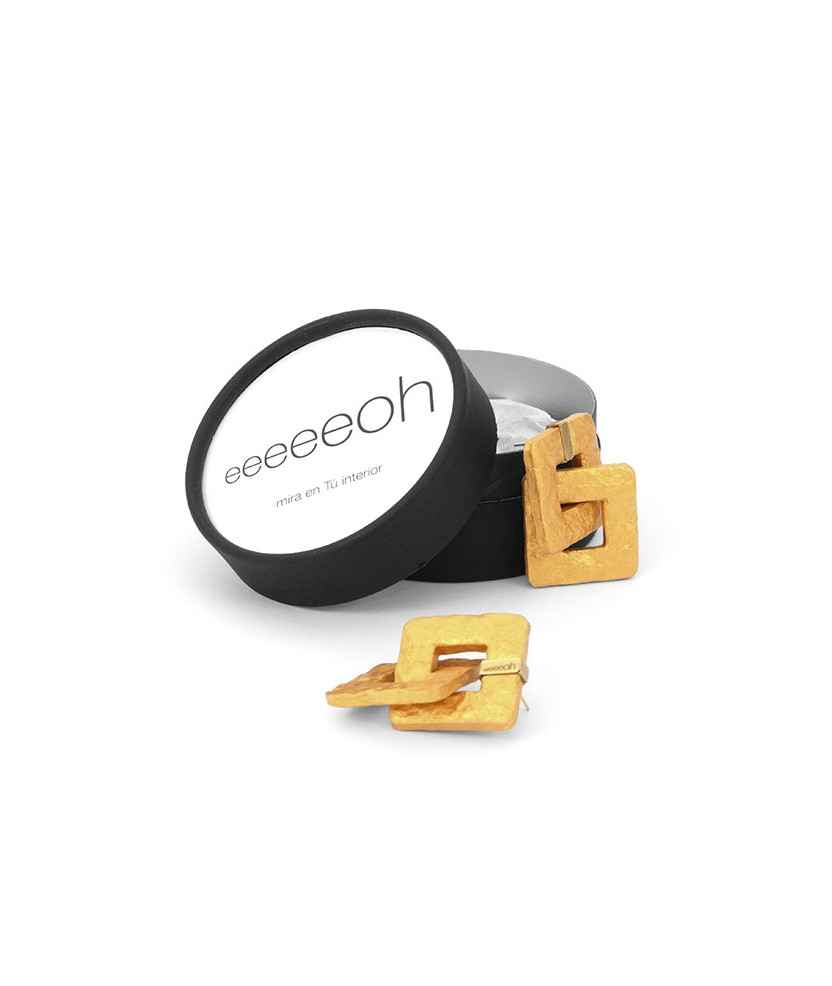 Modelo 22, pendiente de forma cuadrada, tamaño pequeño y color oro. Eeeeeoh es más que un pendiente: es un código de inclusión elaborado con material reciclado y ecológico, creado por personas con diversidad funcional en LaFact. Inspirado en la geometría esencial de la Bauhaus y la filosofía Gestalt, esta pieza muy ligera (menos de 3 g) conecta con la belleza interior y el equilibrio personal. Incluye cierre hipoalergénico para mejor adaptación y comodidad.