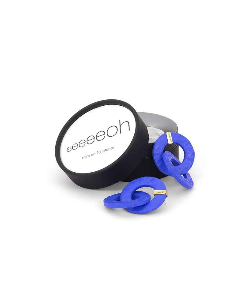 Modelo 33, pendiente de forma circular, tamaño grande y color azul. Eeeeeoh es más que un pendiente: es un código de inclusión elaborado con material reciclado y ecológico, creado por personas con diversidad funcional en LaFact. Inspirado en la geometría esencial de la Bauhaus y la filosofía Gestalt, esta pieza muy ligera (menos de 3 g) conecta con la belleza interior y el equilibrio personal. Incluye cierre hipoalergénico para mejor adaptación y comodidad.